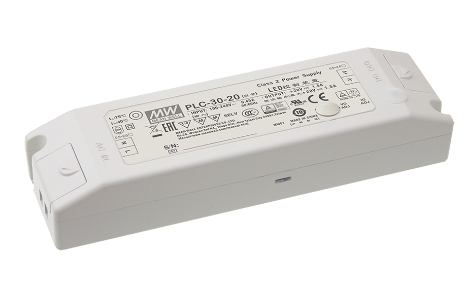 Impulzný zdroj MEAN WELL s PFC pre LED aplikácie, s nastaviteľným výstupným napätím a prúdom a so svorkovnicou