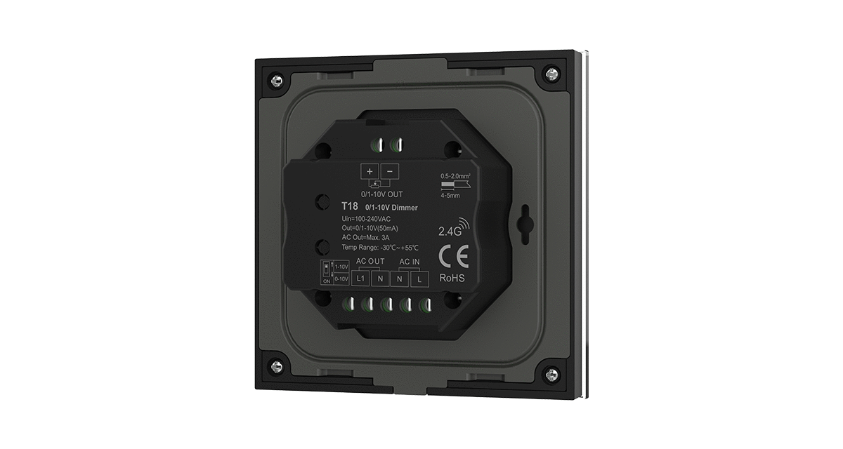 Špecifikácia pre T18 BLACK dotykový ovládač 0/1-10V 1-zónový + RF príjimač