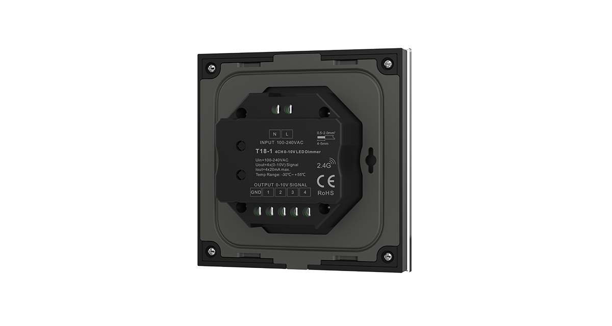 Špecifikácia pre T18-1 BLACK dotykový ovládač 0/1-10V 4-zónový + RF príjimač