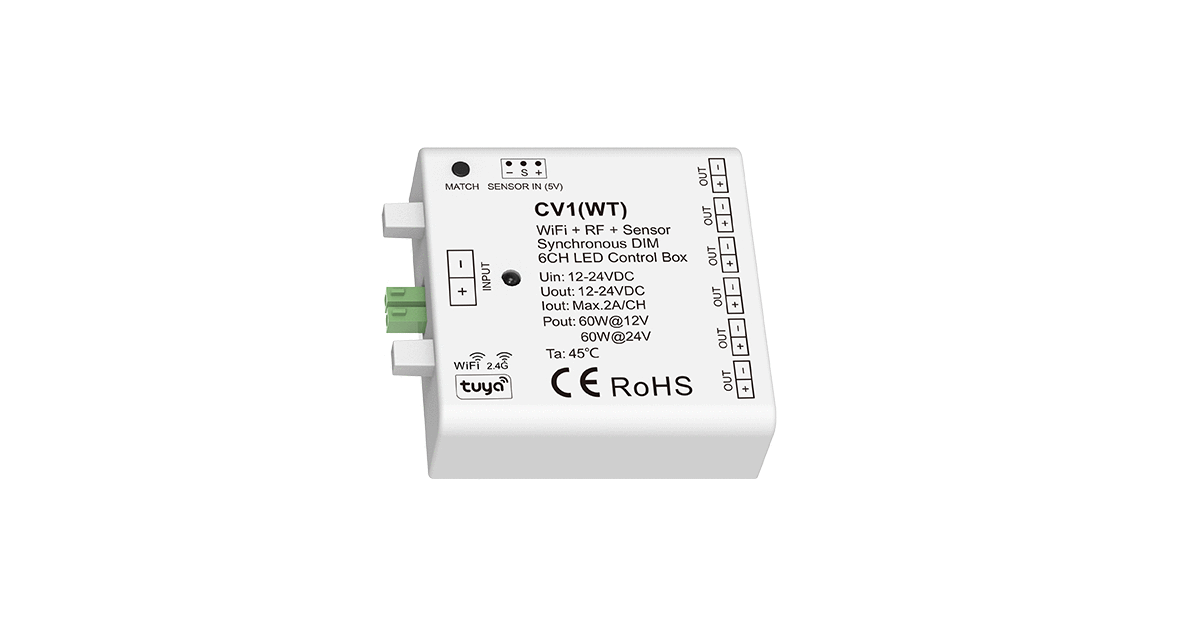 Rozbočovací box so stmievačom pre napájací zdroj SKD-PBL-60-24 ( možnosť pripojiť 6 LED pásov + senzor )