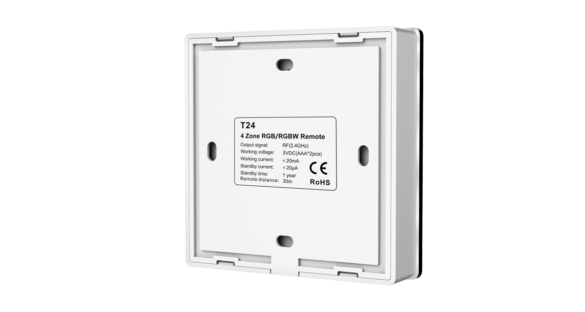 Špecifikácia pre T24 WHITE RGBW dotykový ovládač RF 4-zónový