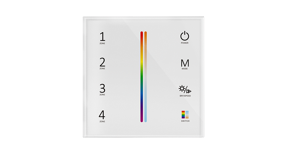 4-zónový sklenený RGBCCT ovládač - stmievač