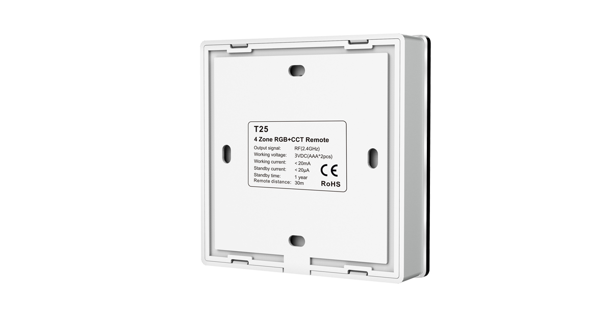 Špecifikácia pre T25 WHITE RGBCCT dotykový ovládač RF 4-zónový