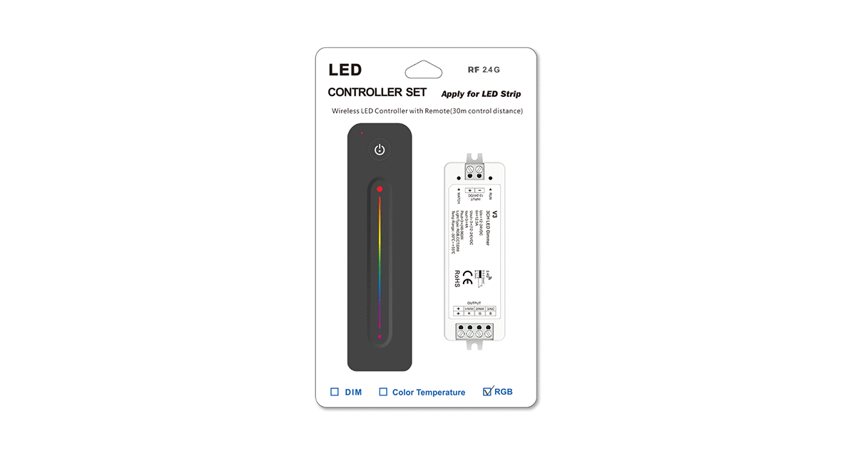 Špecifikácia pre V3+R13 set riadiacej jednotky RGB a ovládača RF 1-zónový